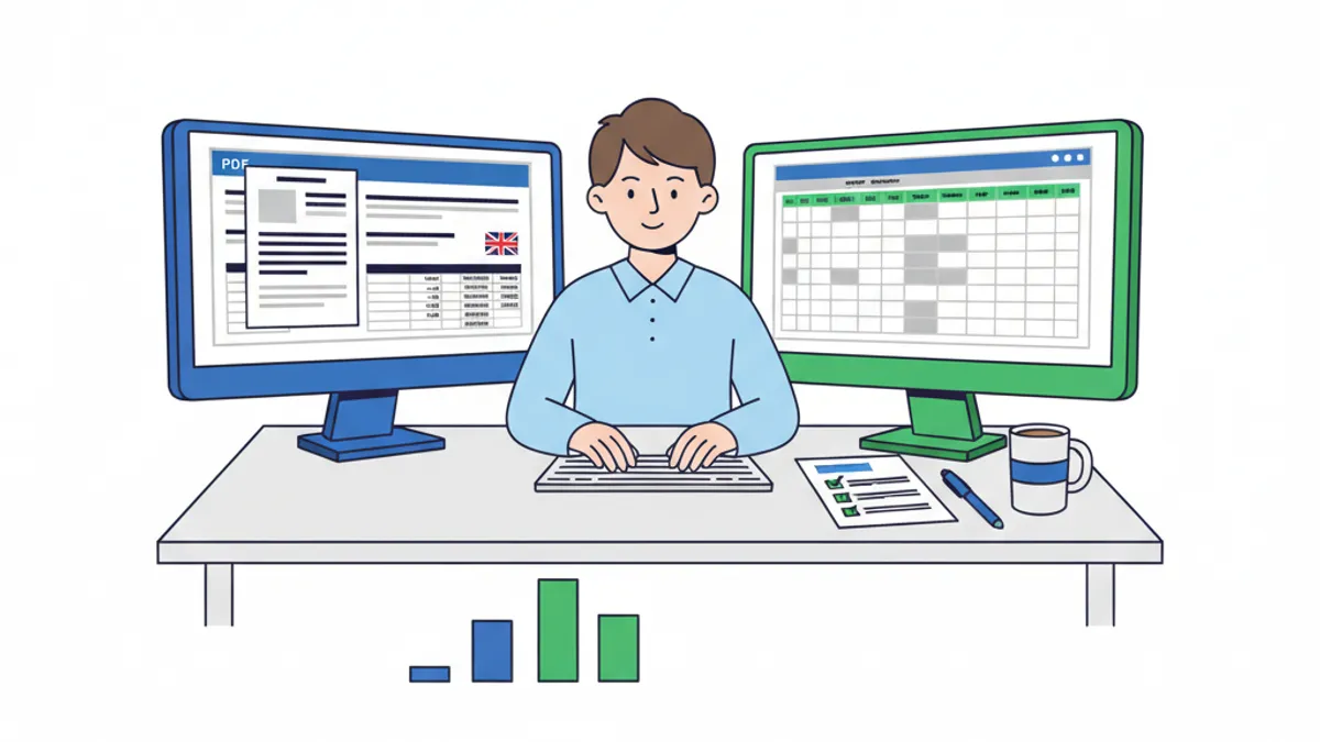 This maps directly onto the data fields you get when you convert a bank statement properly. A raw PDF from Barclays, HSBC, or Lloyds contains all four of those fields, but locked inside an unstructured document. The conversion step extracts them into rows and columns that software can read.